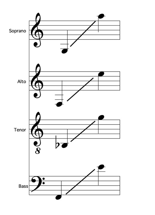 Q: What is the vocal range required for each voice part?